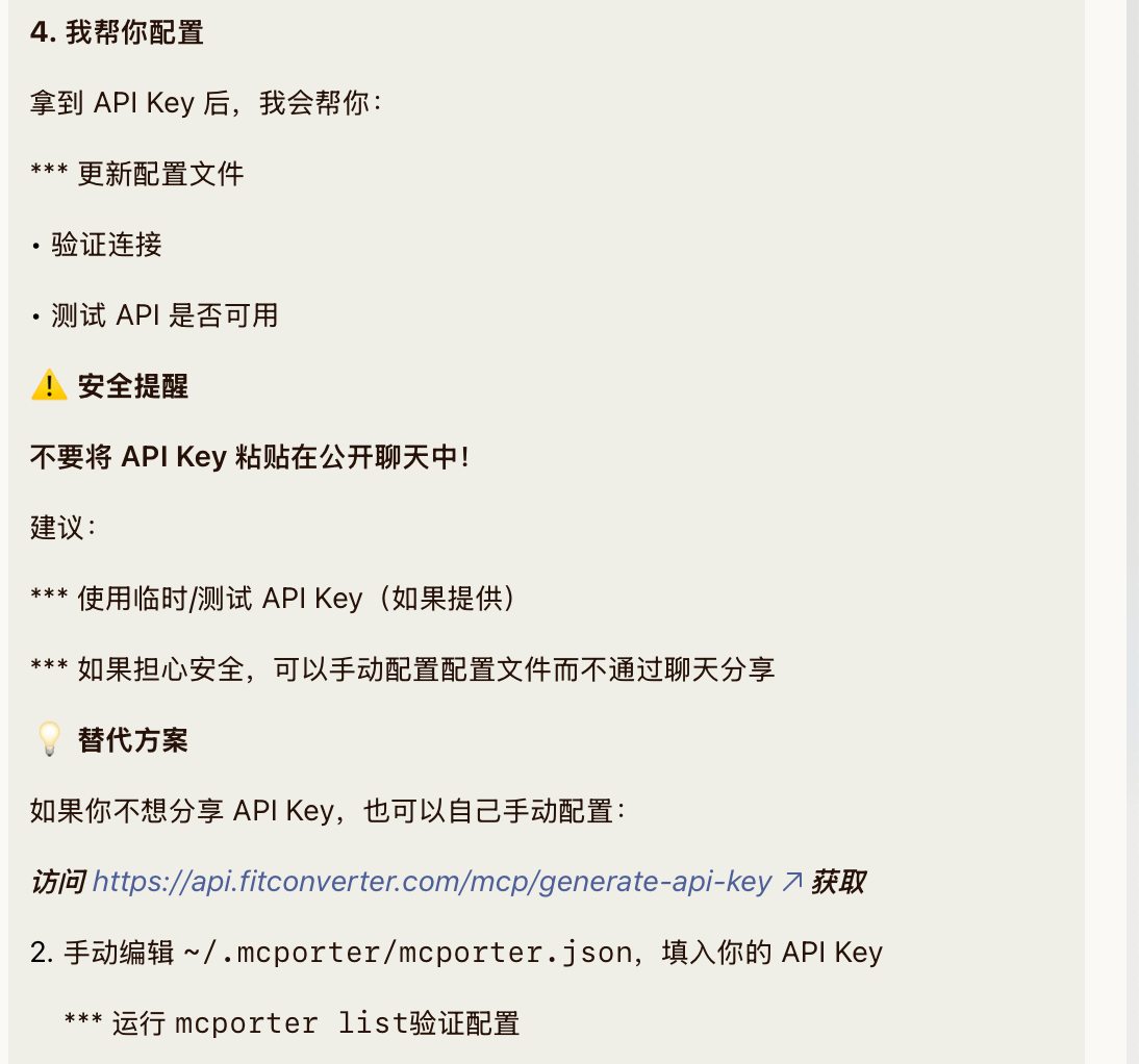 获取 API Key:访问 https://api.fitconverter.com/mcp/generate-api-key