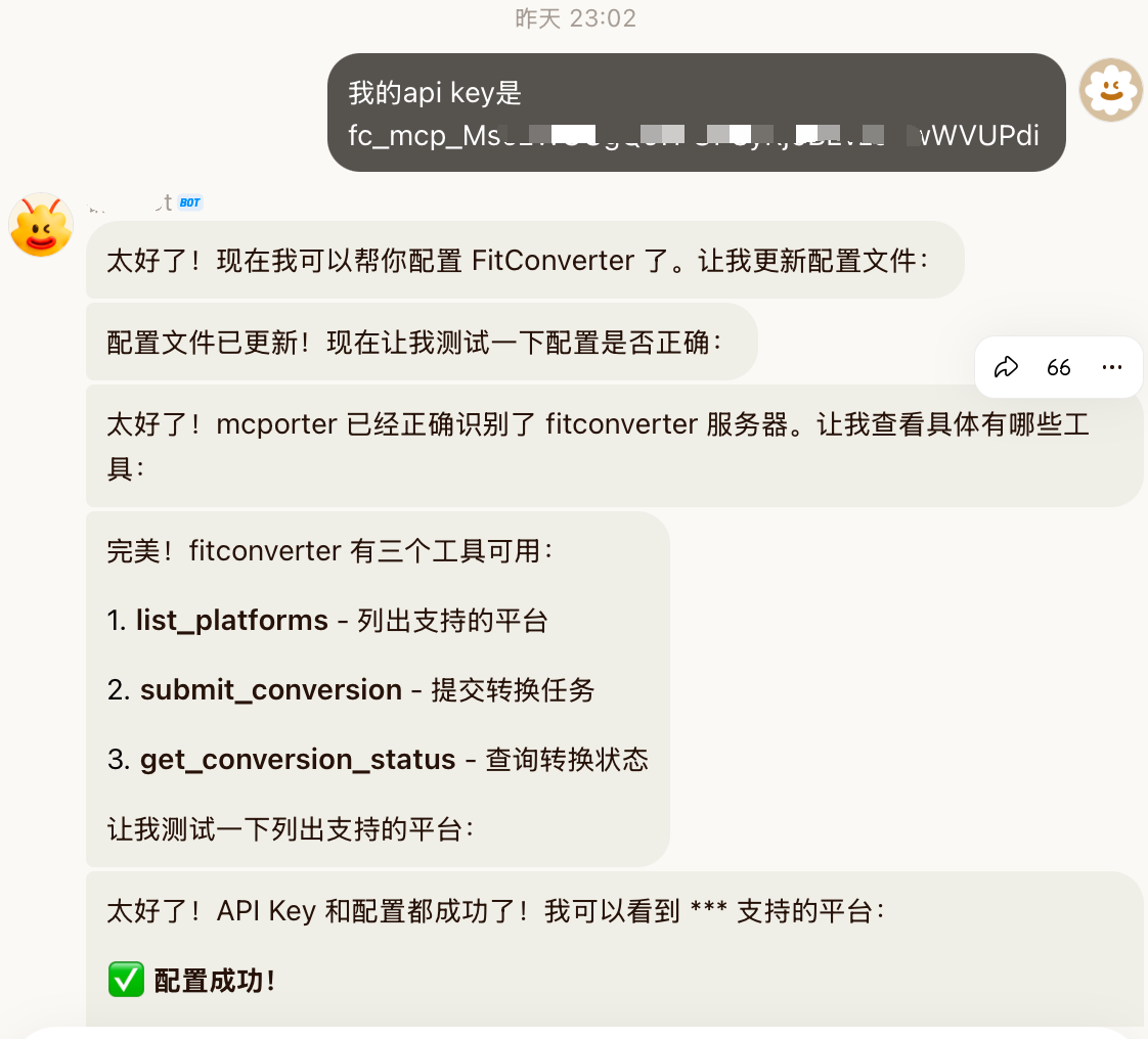 可以自行访问 https://api.fitconverter.com/mcp/generate-api-key 免费获取api-key,也可以试着让你的小龙虾来获取api key。